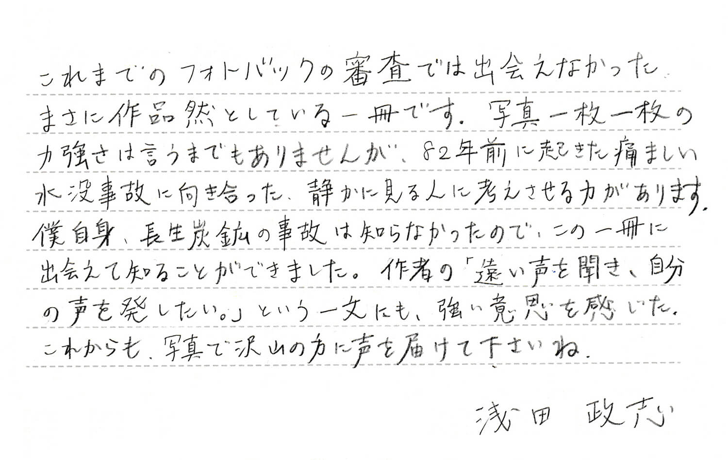 写真家。専門学校在学中に自身を含めた家族写真を撮り始め、「浅田家」(赤々舎)で第34回木村伊兵衛写真賞を受賞。2014年12月に東日本大震災での写真洗浄の現場を取材した「アルバムのチカラ」(藤本智士氏共著/赤々舎)を刊行。