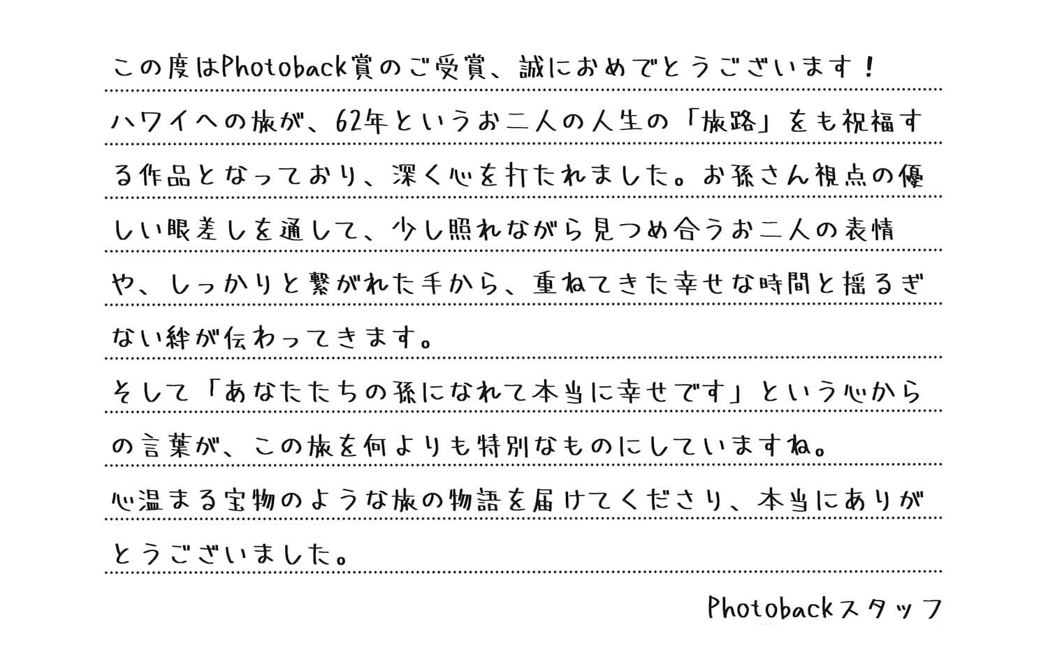 Photoback賞(一般投票賞) ・・・1名